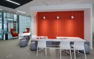 A striking monochrome palette was softened with the use of soaped oak and burnt orange tones with large-scale photography. Enabling spontaneous staff interaction and collaboration was a key driver with the project while enabling people to focus without interruption. We introduced phone booths, screened collaboration hubs and bookable meeting space to help teams work more efficiently. A large breakout space was introduced to harness the growing company culture.